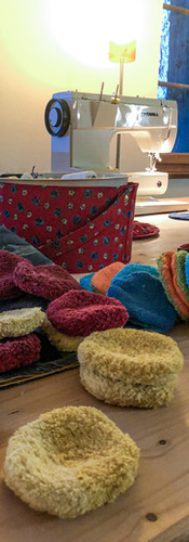 Mehrweg Abschminkpads aus Eigenproduktion im waschbaren Beutel. Ein Wisch und alles ist weg..